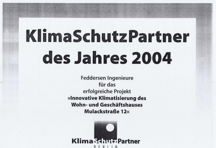 Klimaschutzpartner 2004 Für den Neubau eines Wohn- und Geschäftshauses in der Mulackstraße 12 in Berlin.